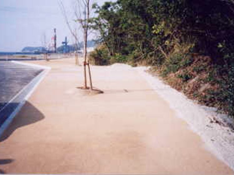 また不要な雑草が生えないように、防草舗装としてお使い頂けると共に、透水性があり、雨水は土壌に浸透します。