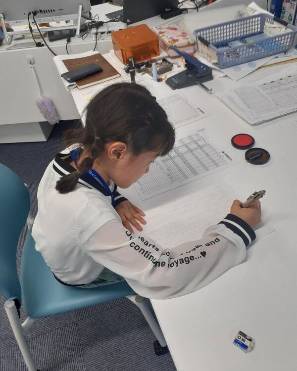 2025年08月05日(火)、社員のお子さんを対象とした「子どもお仕事参観デー」を開催しました。 建設の仕事の奥深さや、普段パパやママがどんな仕事をしているのかを体験してもらうことを目的とし、様々なプログラムを用意しました。 ヘルメットをかぶって現場の安全管理を体験したり、ドローン操作や名刺交換に挑戦したりと、目を輝かせながら活動していました。 また、日立建設が手掛けている実際の工事現場を見学し、普段見ることのできない建設中の建物の様子を、熱心に写真に収めている姿が印象的でした。 社内に戻ってからは、事務作業も体験。真剣な表情でペンを走らせる姿は、まるで小さな社員のようでした。 参加してくれたお子さんからは、「ドローンが楽しかった」といった嬉しい感想がたくさん聞かれました。 このイベントを通して、子どもたちにとって仕事がより身近なものとなり、社員にとっても改めて仕事への誇りを感じる良い機会となりました。 日立建設は、今後もこのようなイベントを通じて、地域社会や社員の家族との繋がりを大切にしていきます。